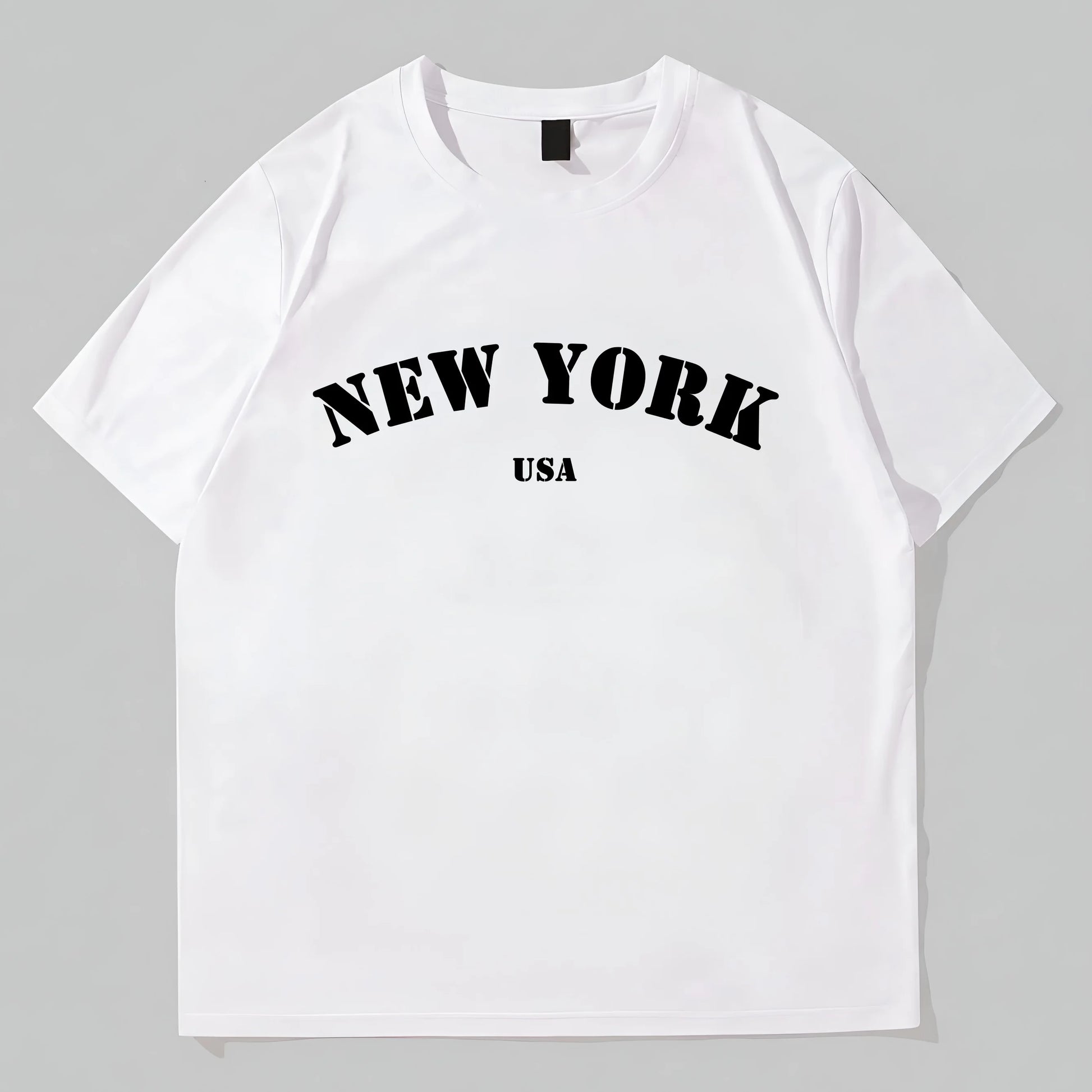 Trendy T-Shirt For Man Round Neck Short Sleeve T-Shirt with City Name Print for Casual Wear