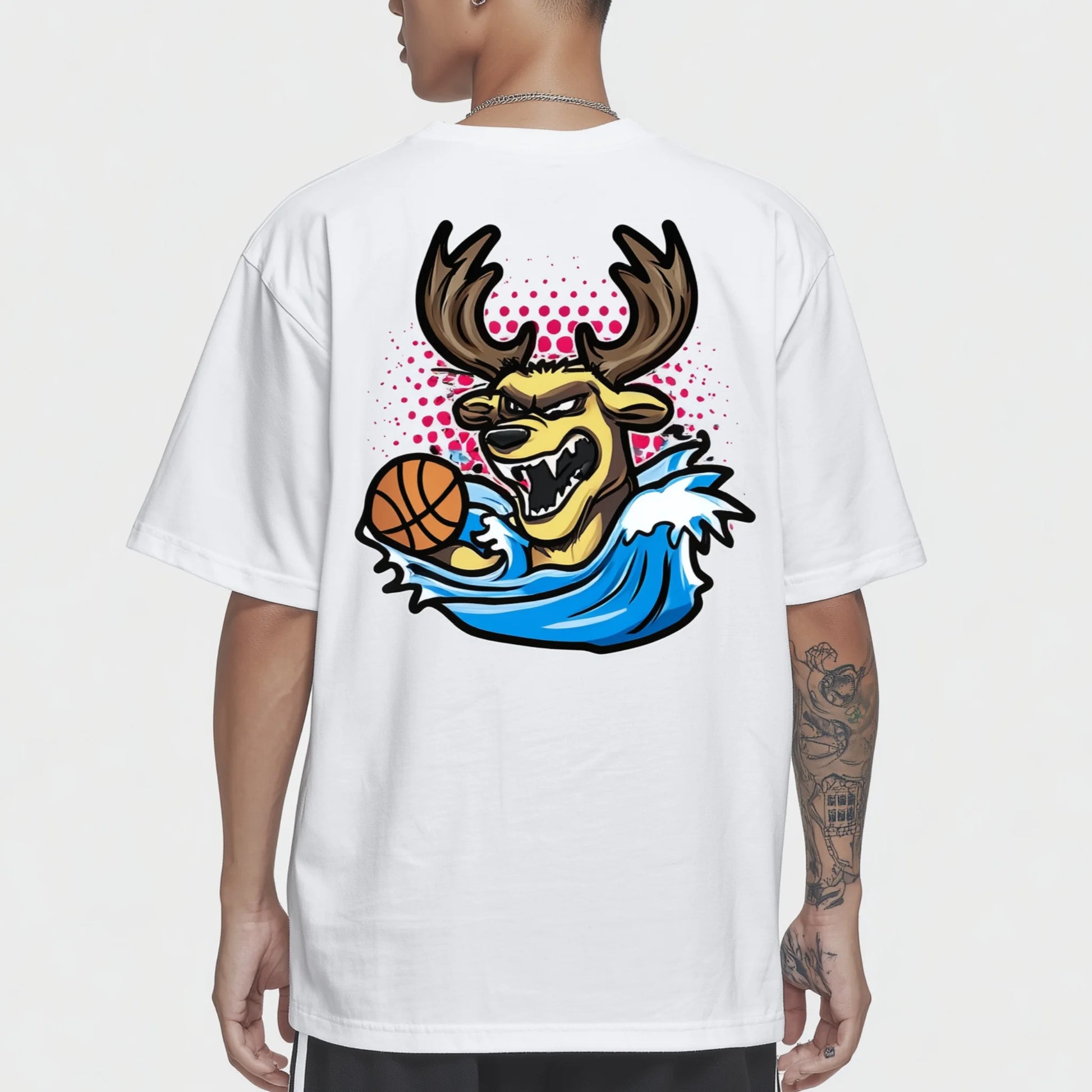 Trendy Tees For Man Casual T-Shirt Cartoon Deer Basketball Print Sports Outdoors