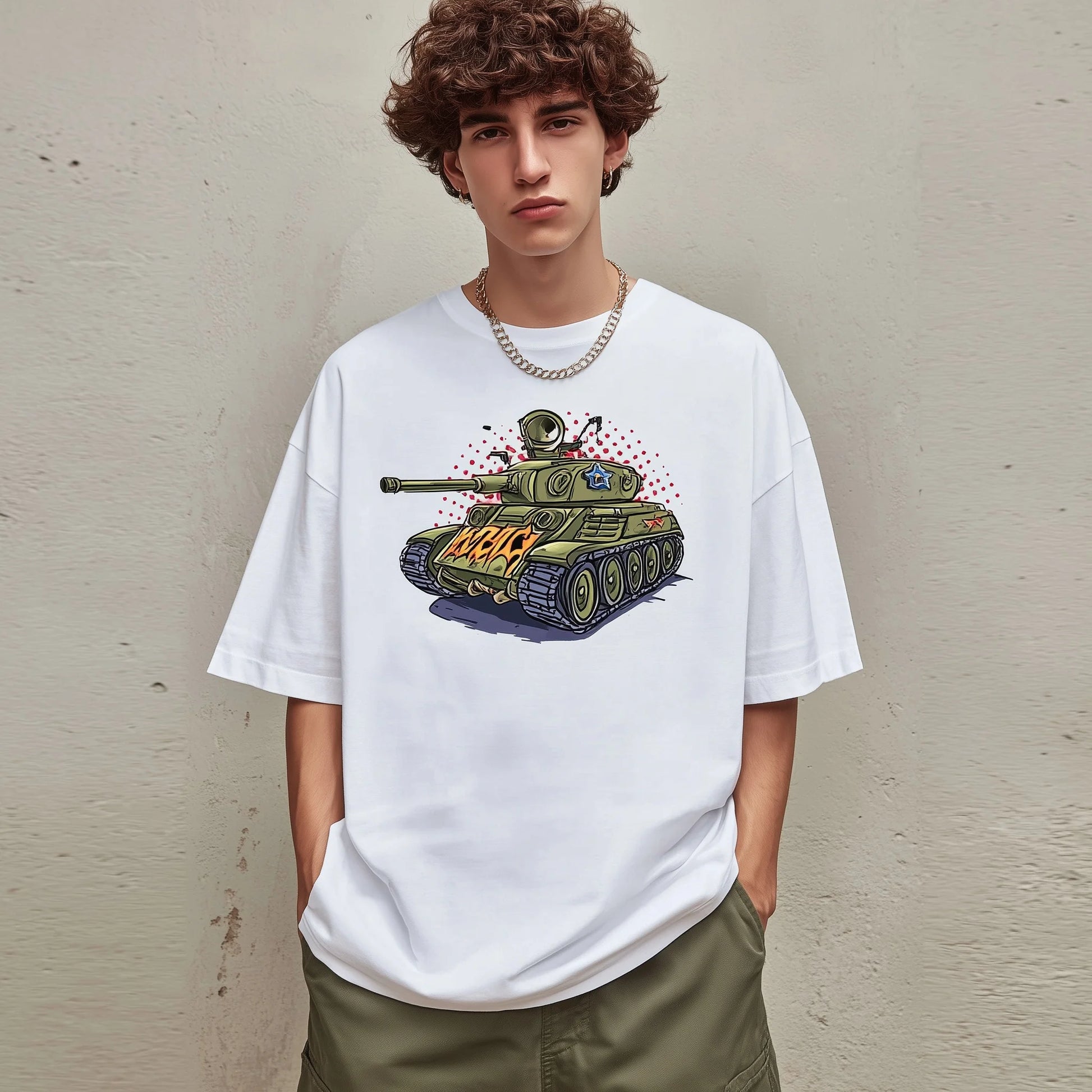 Trendy Tees For Man Casual T-Shirt Military Tank Graphic Print Summer Outdoor Wear