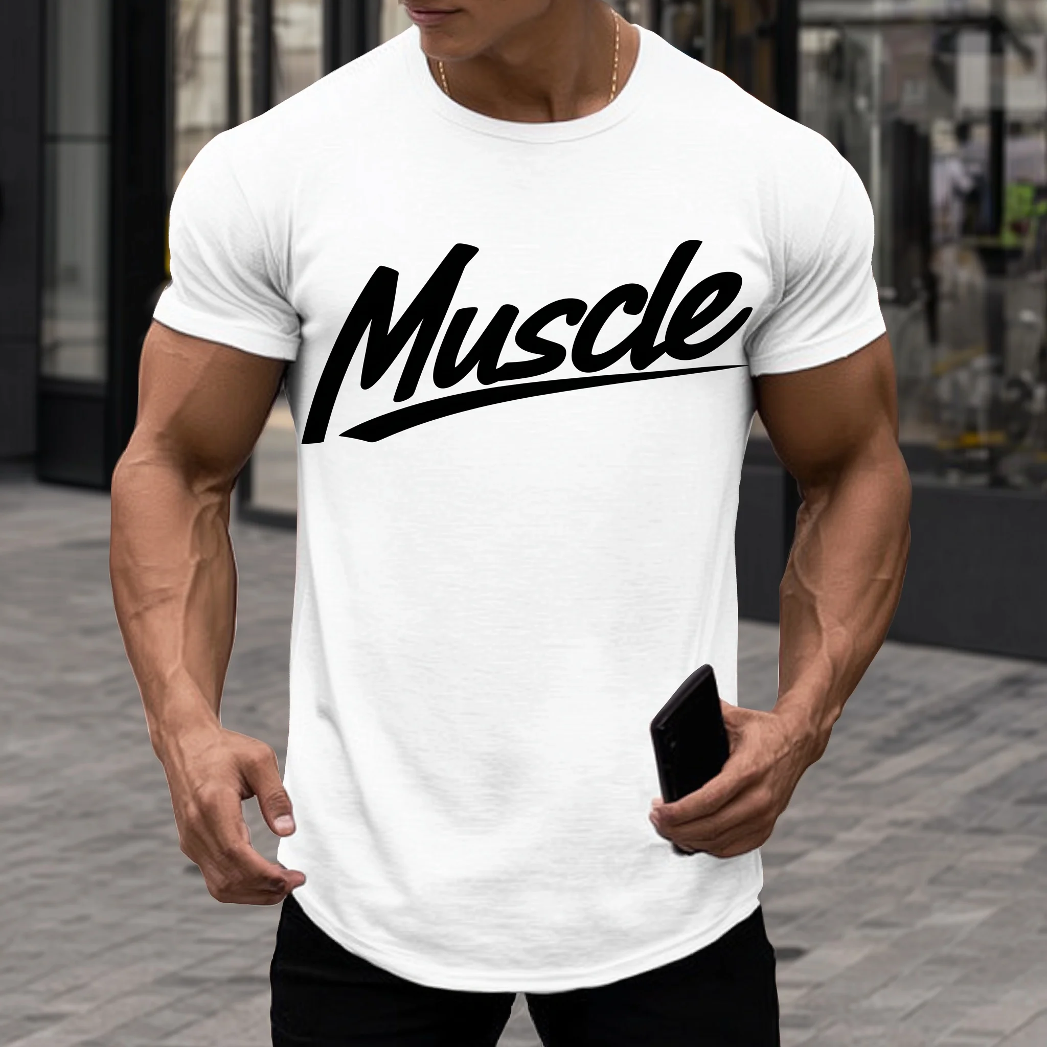 Trendy Tees For Man Casual T-Shirt Muscle Text Print Fitness Workout Clothing