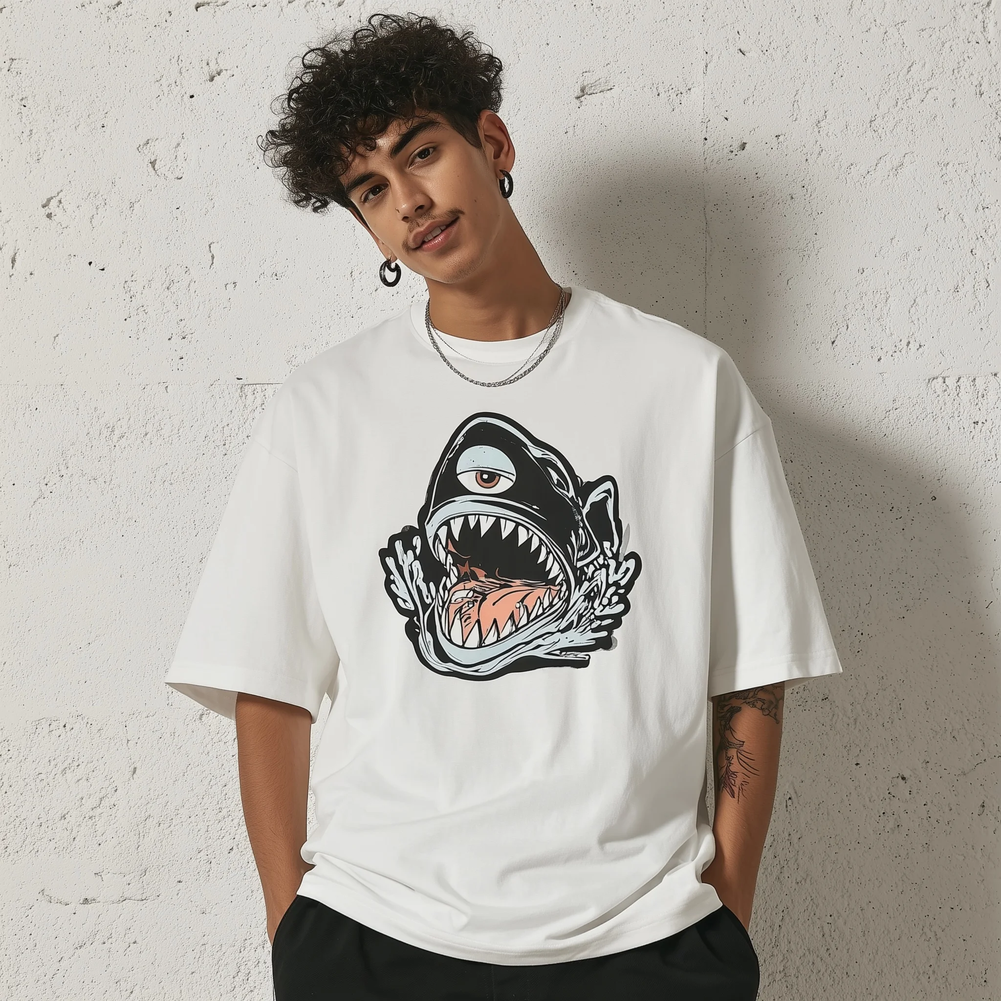 Trendy Tees For Man Casual T-Shirt Shark Mouth Graphic Print Summer Daily Wear