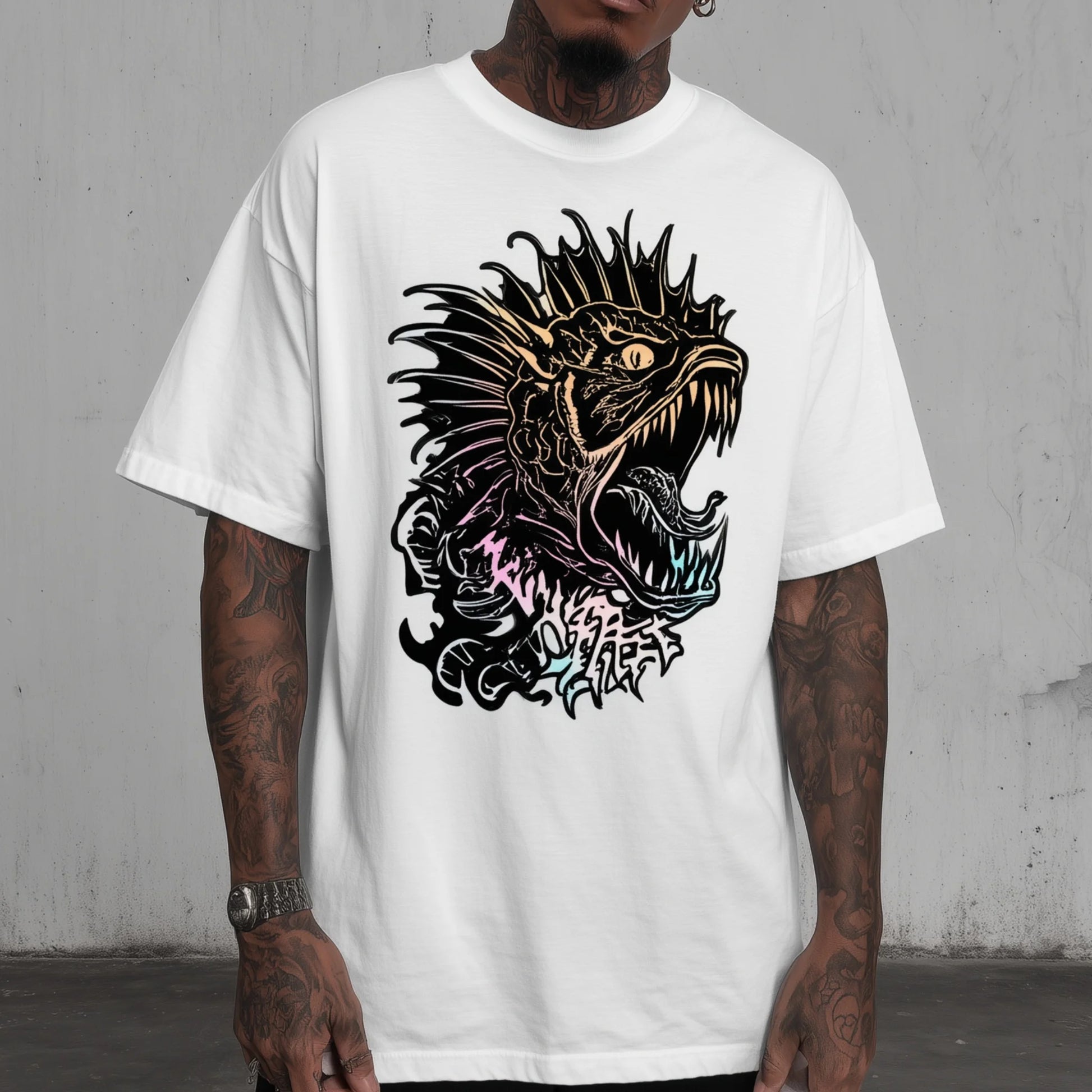 Trendy Tees For Man Casual T-Shirt with Mythical Beast Graphic Print for Daily Wear