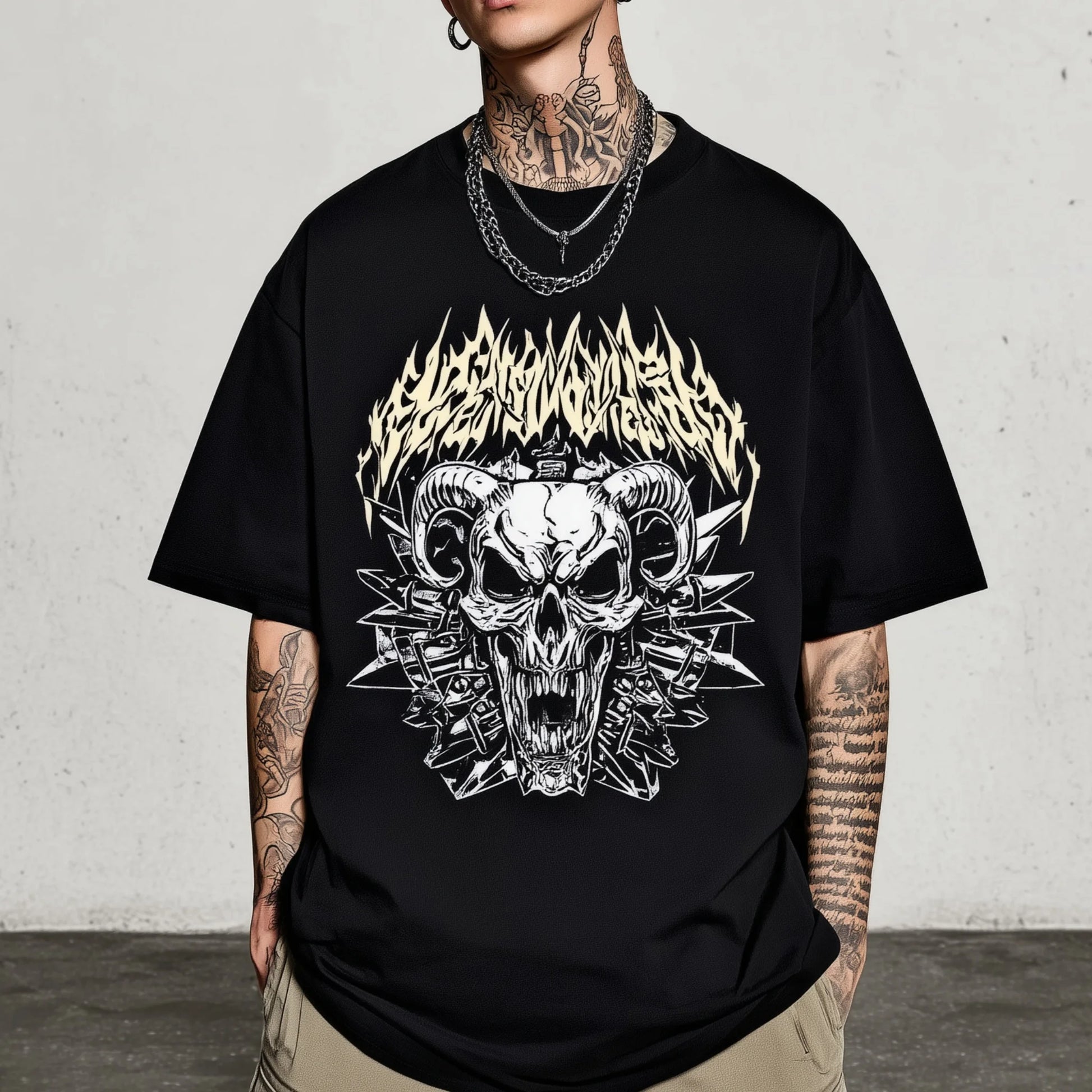 Trendy Tees For Man Short Sleeve T-Shirt Skull Graphic Print Streetwear Casual Daily Wear