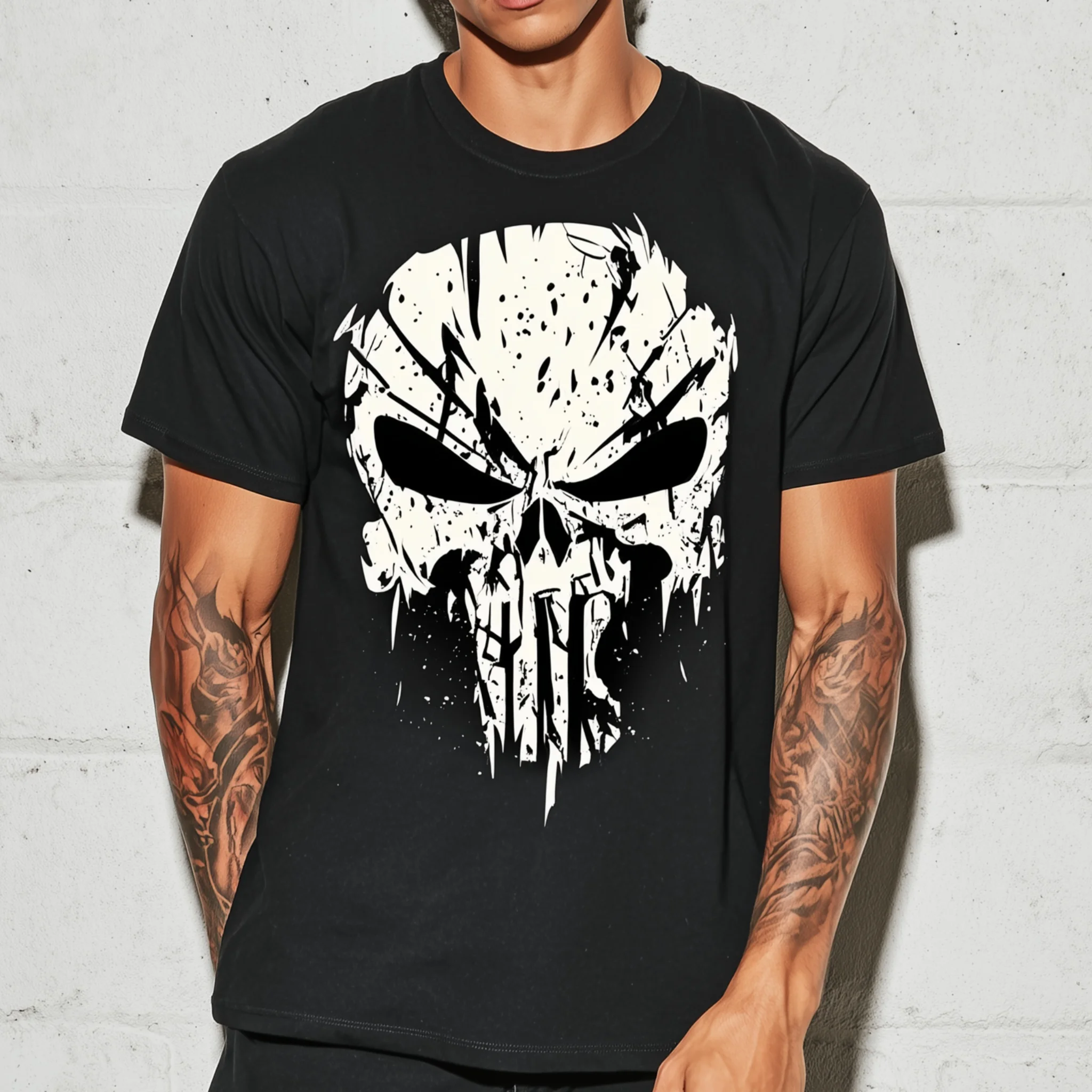 Trendy Tees For Man Skull Design T-Shirt with Distressed Graphic Print for Casual Wear