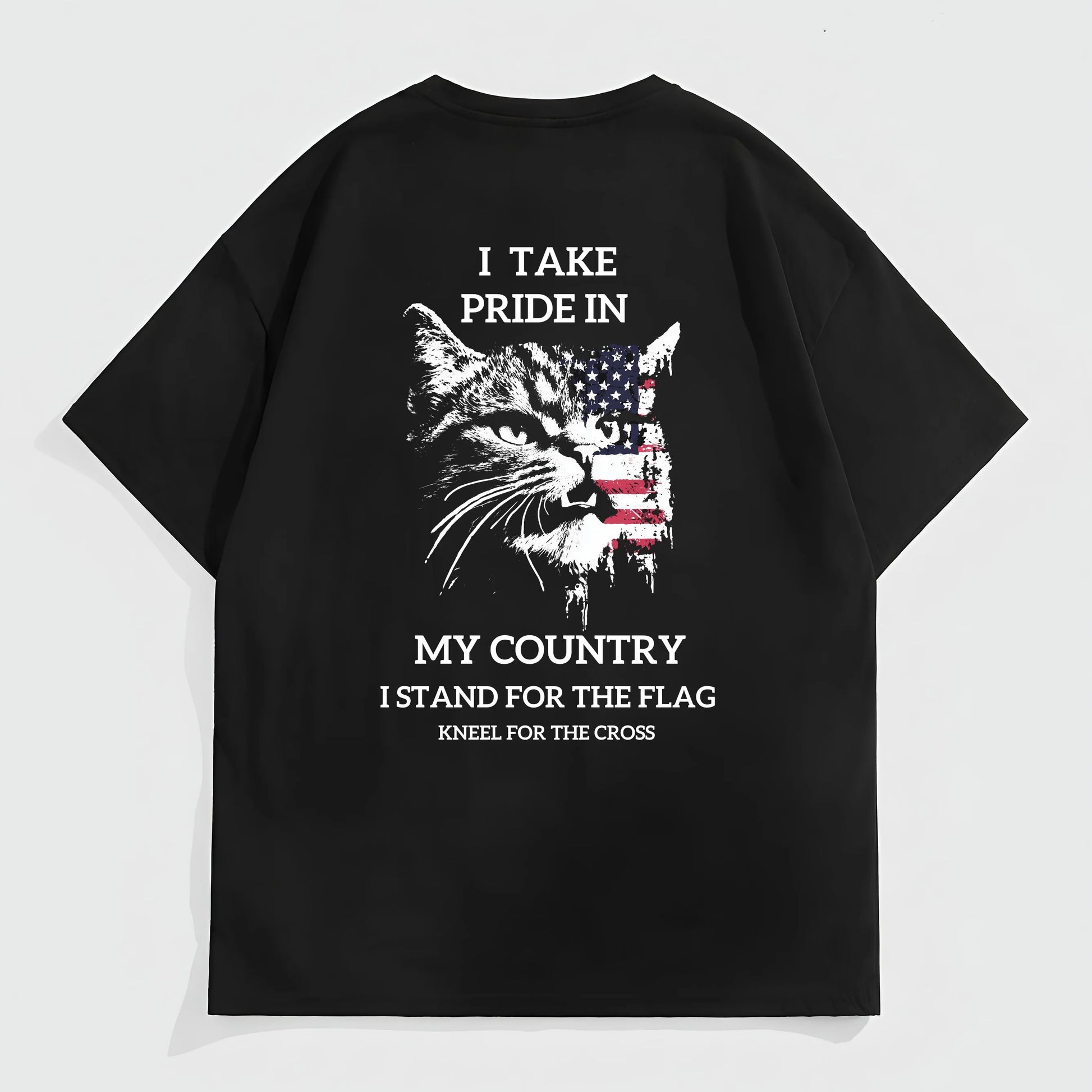 Trendy Tees for Men Men's Casual T-Shirt Patriotic Cat Flag Print Graphic Tee for Daily Wear and Outdoor Activities