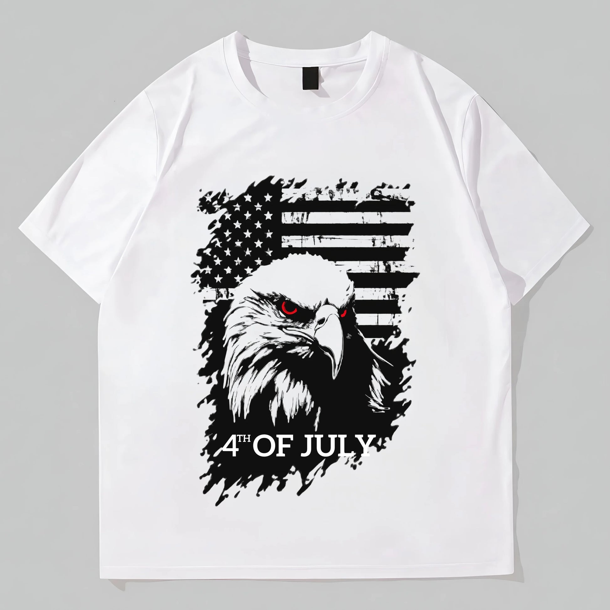 Trendy Tees for Men White T-Shirt with Eagle and Flag Print for 4th of July Independence Day Celebrations