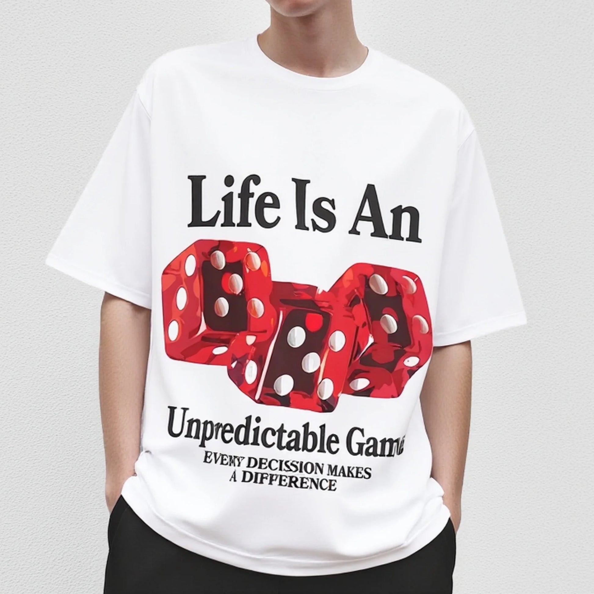 Unisex T-Shirt with Dice Pattern and Inspirational Quote for Casual Wear Fashion Tees For Summer