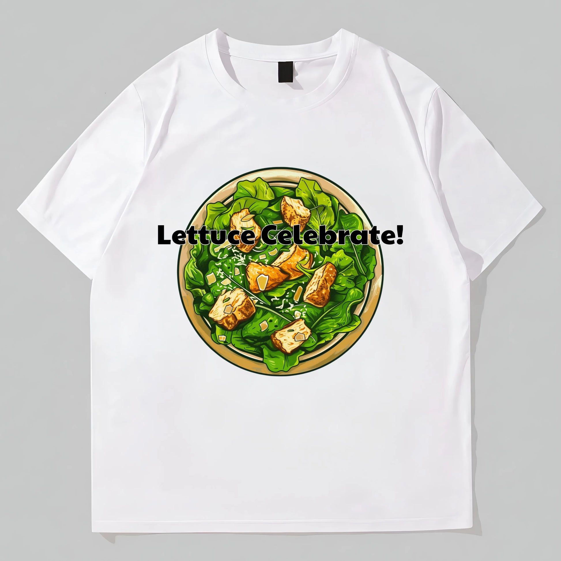 White T-Shirt with Lettuce Celebrate Pizza Graphic for Casual Wear POD Graphic Tees