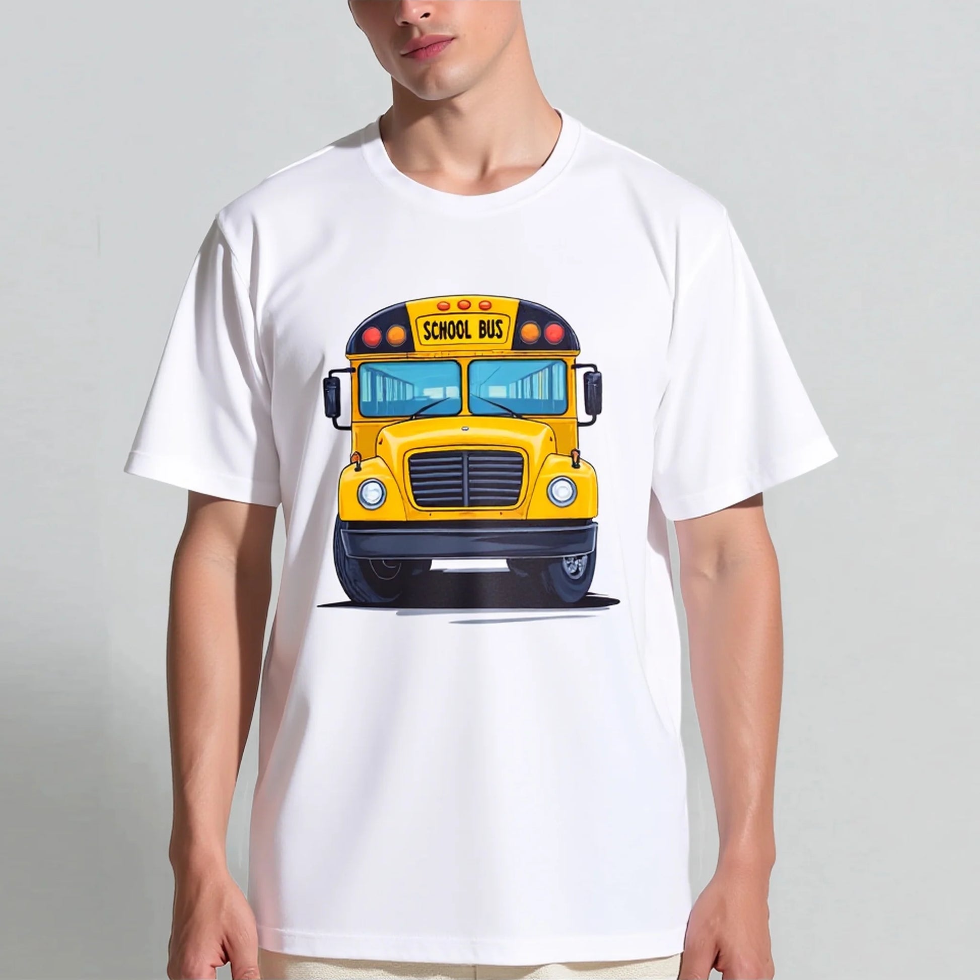 White T-Shirt with School Bus Graphic for Casual Wear Graphic Tees Boutique